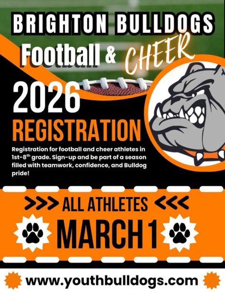 Welcome to the online home of the Brighton Bulldogs Football and Cheer. Our athletes represent excellence both on and off the field, and we set our expectations high: study hard, train hard, and work hard. Our athletics program is unparalleled, thanks to a supportive community of parents and fans. Our experienced coaching staff specializes in building better athletes, students, and citizens. We emphasize teamwork and demand the personal commitment to "play like champions"—every practice, every game, every time.